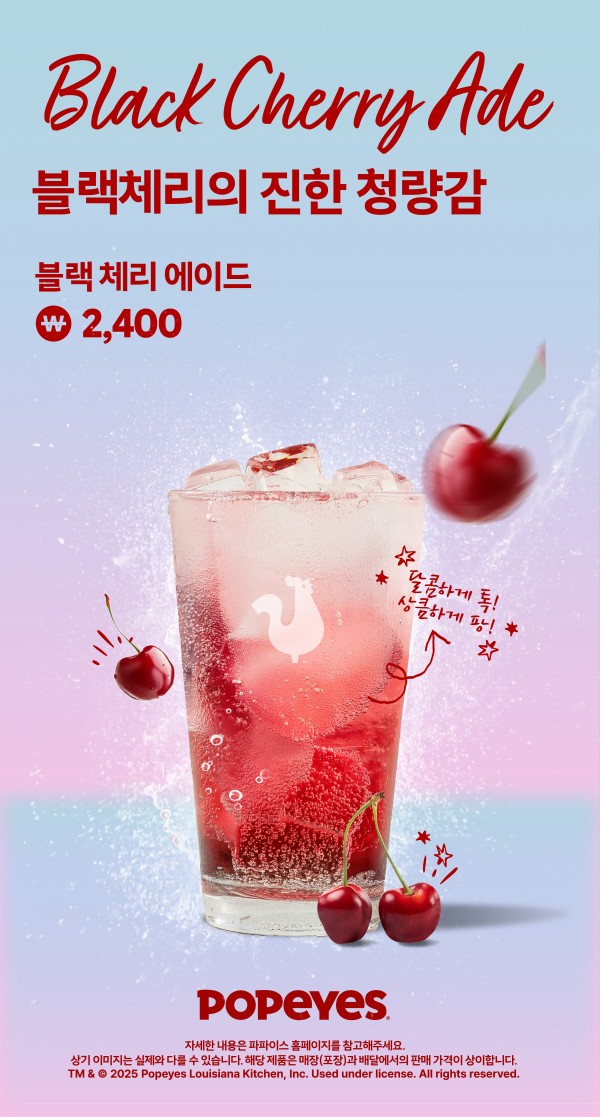 톡 쏘는 사이다와 달콤한 체리의 만남, 입안 가득 채우는 상큼 스파클링 체리에이드 한 잔!