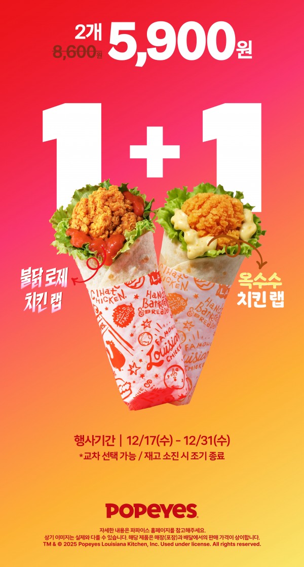 불닭 로제 & 옥수수 치킨랩! 두 가지 맛의 치킨랩을 5,900원에 만나보세요.